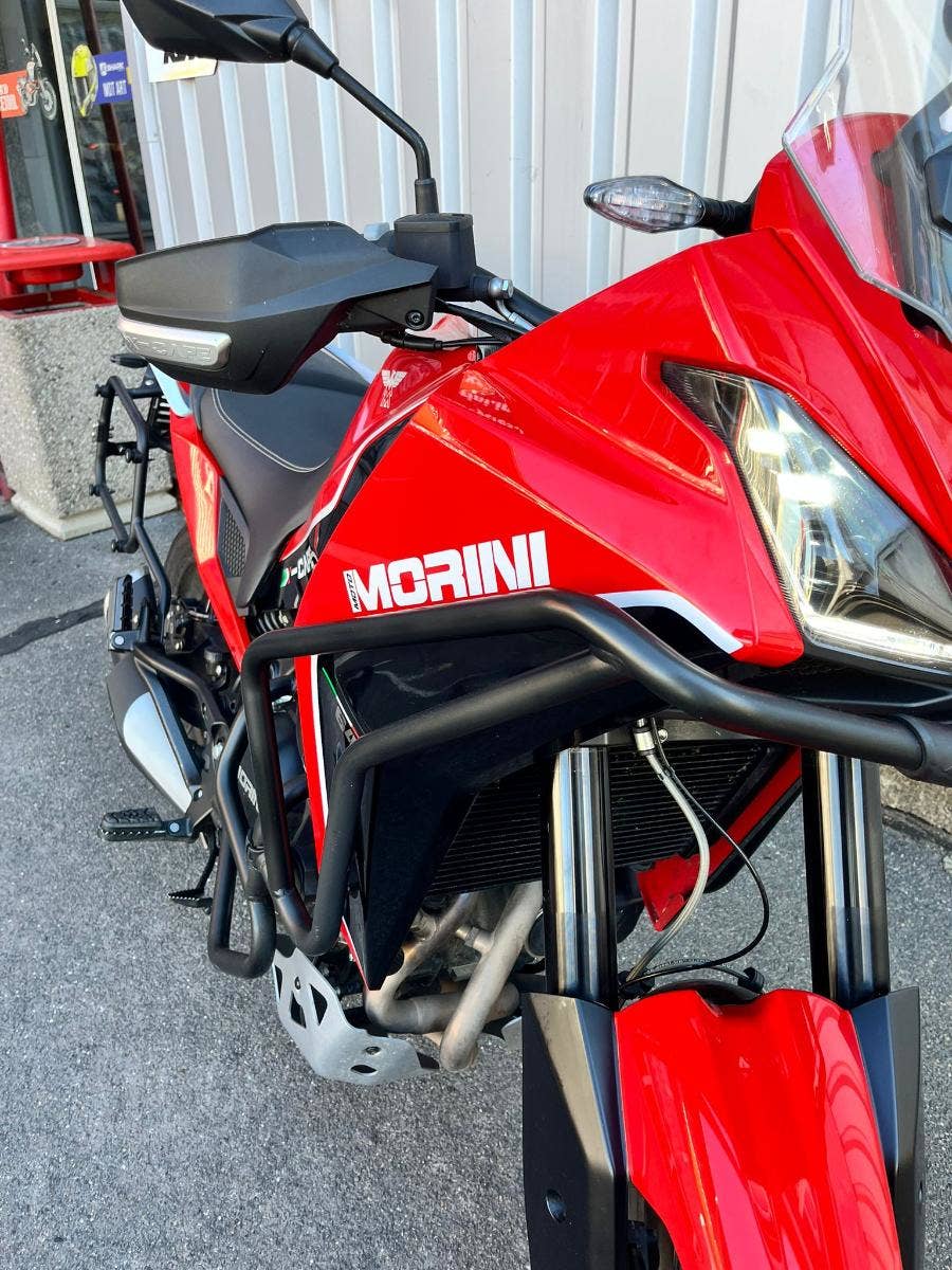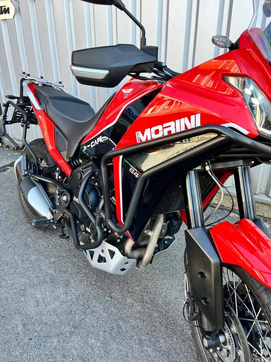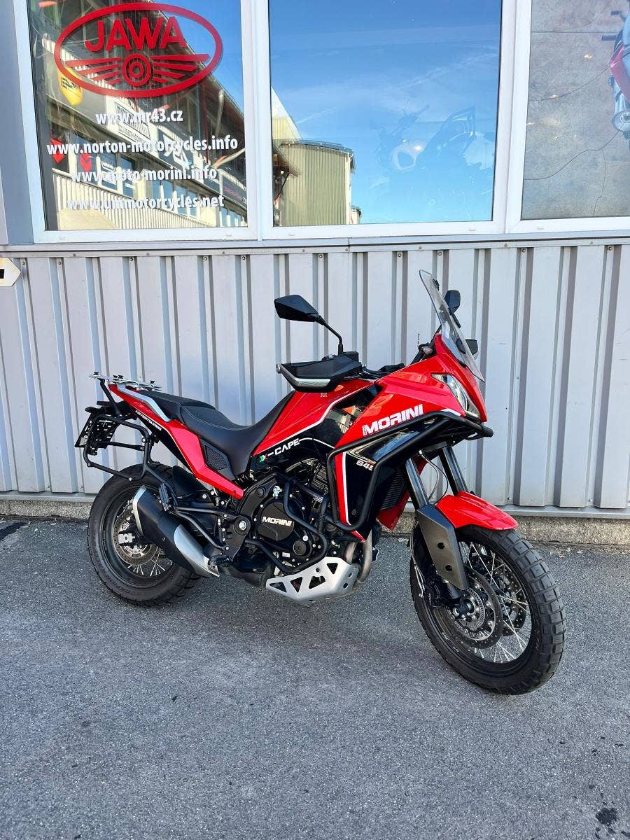 X-CAPE je dobrodružství ve stylu Moto Morini: všestrannost, zábava a pohodlí ve futuristickém poutavém vzhledu. 19" přední kolo a nastavitelná vidlice o průměru 50 mm zaručují úžasnou přilnavost k terénu a vozovce, díky čemuž se udržíte v sedle jak v horském průsmyku, tak i na prašné cestě.